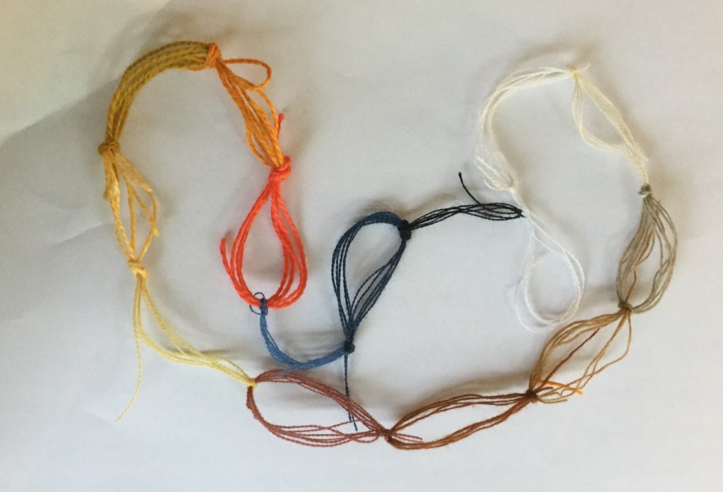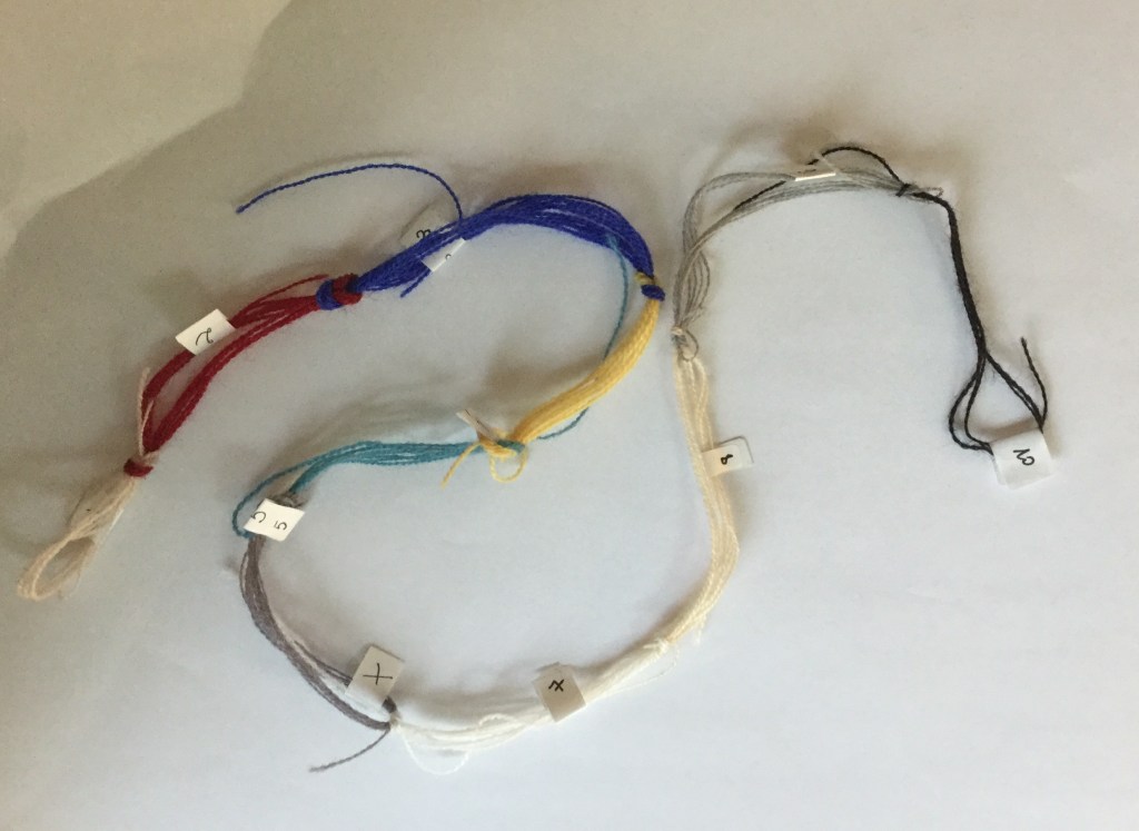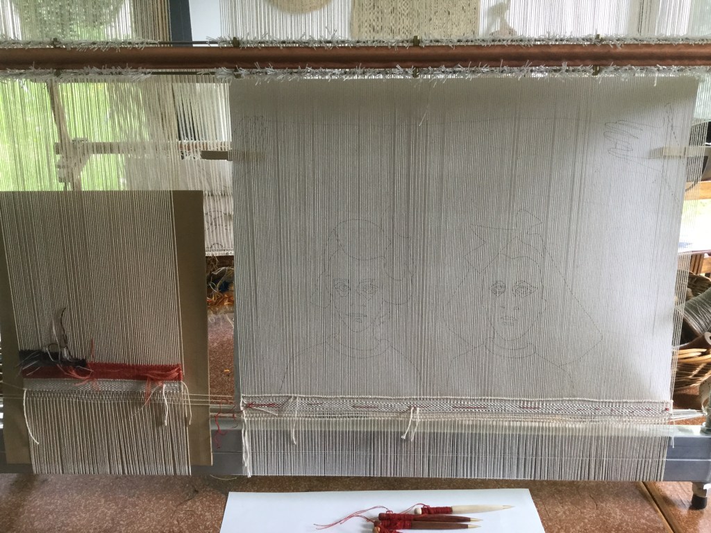 It is that name weavers in Aubusson call the line of yarn with all the colors they will use on a piece. Mine are very small, in Aubusson, rosaries can have as many as on hundred colors. The one with numbers is Alice and Anita’s, because I planned the colors before weaving and decided where they would be. So I just had to look at my paper and know which color to pick. For Not Matisse, it was not useful, and I just made a rosary in order to keep trace of the colors. For AA2, I will do a rosary, but the colors are roughly indicate on a sketch.