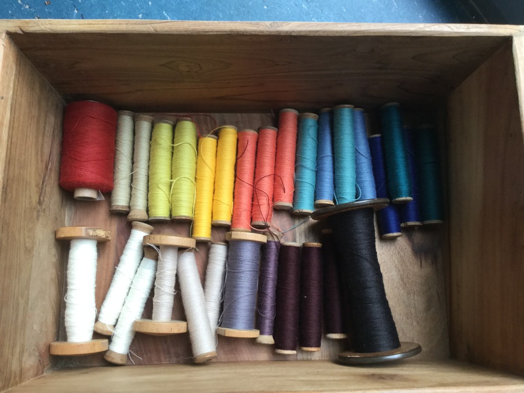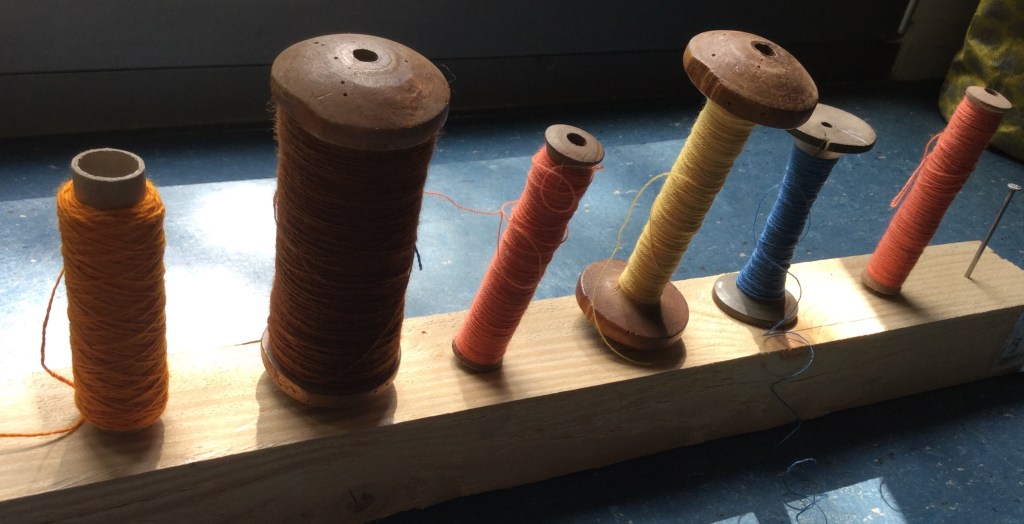 Je me suis fabriqué un cantre, parce que ça a été une vraie galère de faire les bobines de chiné sans cet outil. J’espère qu’il va marcher, sinon je demanderai de l’aide au padawan de ma padawan!