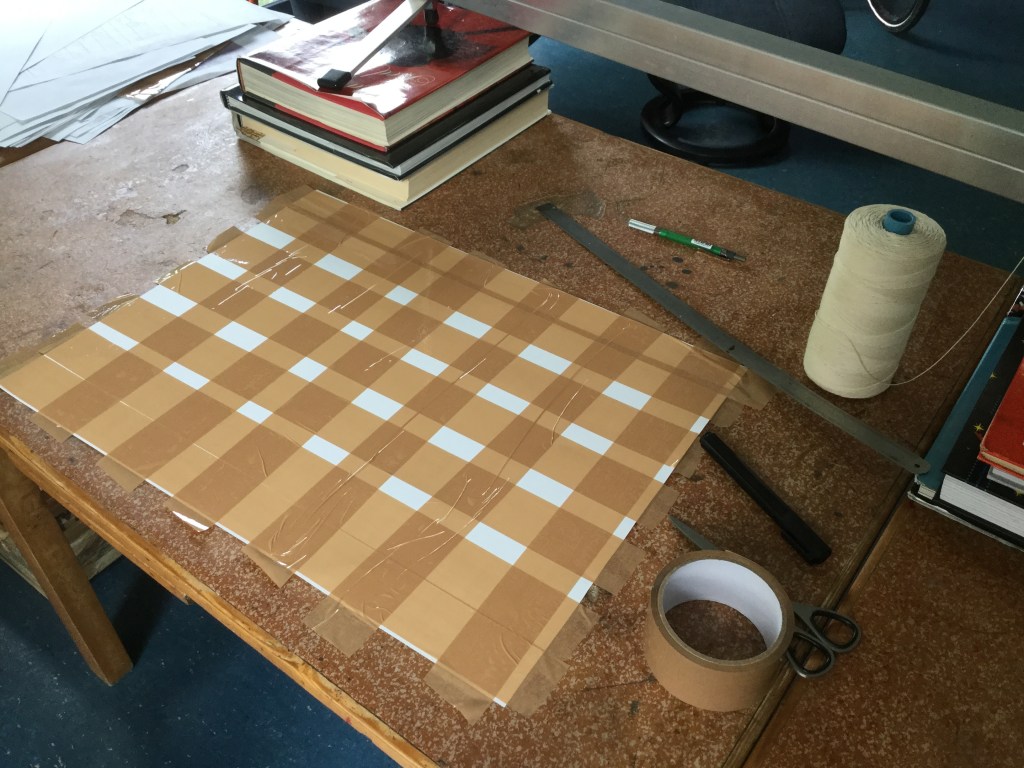 The loom is ready, warped at 12epi. The header is woven. The cartoon has been taped, then sewn. The colors are chosen, the design is planned. Samples have begun. Launching next week-end I bet, if Not Matisse is finished.