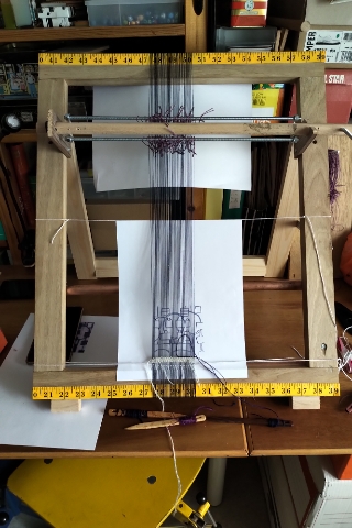 Olivier a construit ce fabuleux métier pour Celina, en attendant la livraison du Mirrix. Avec un peigne à poux adapté, tout est prêt pour une nouvelle tapisserie!