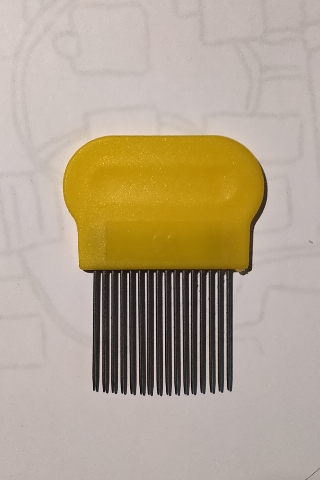 Celina has just ordered a Mirrix, and is impatiently waiting for the delivery. Her dedicated husband, Olivier, wanted to help. So he built her a loom, inspired by the Mirrix. Isn’t it beautifully crafted? And it works! With a customised lice comb as a beater, Celina is ready to go. Happy weaving!