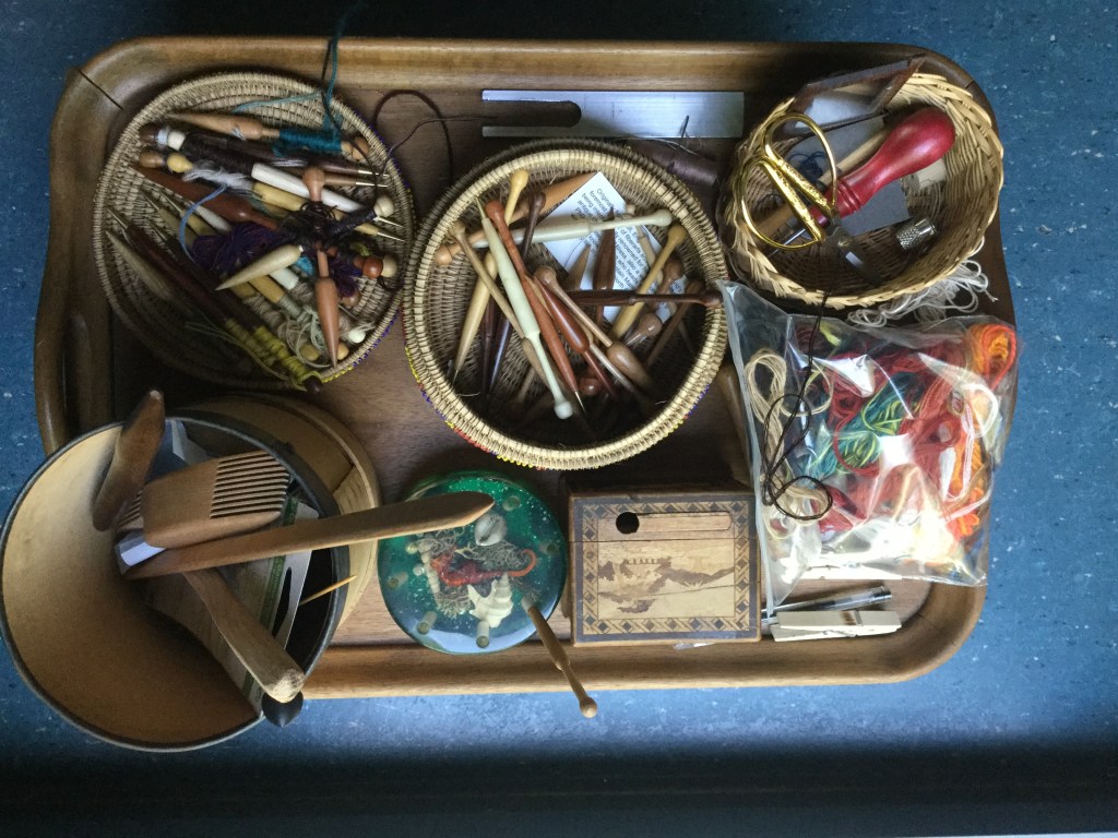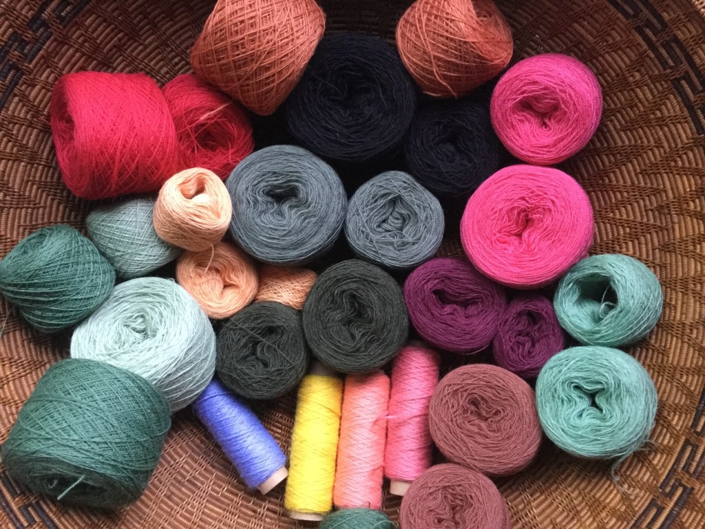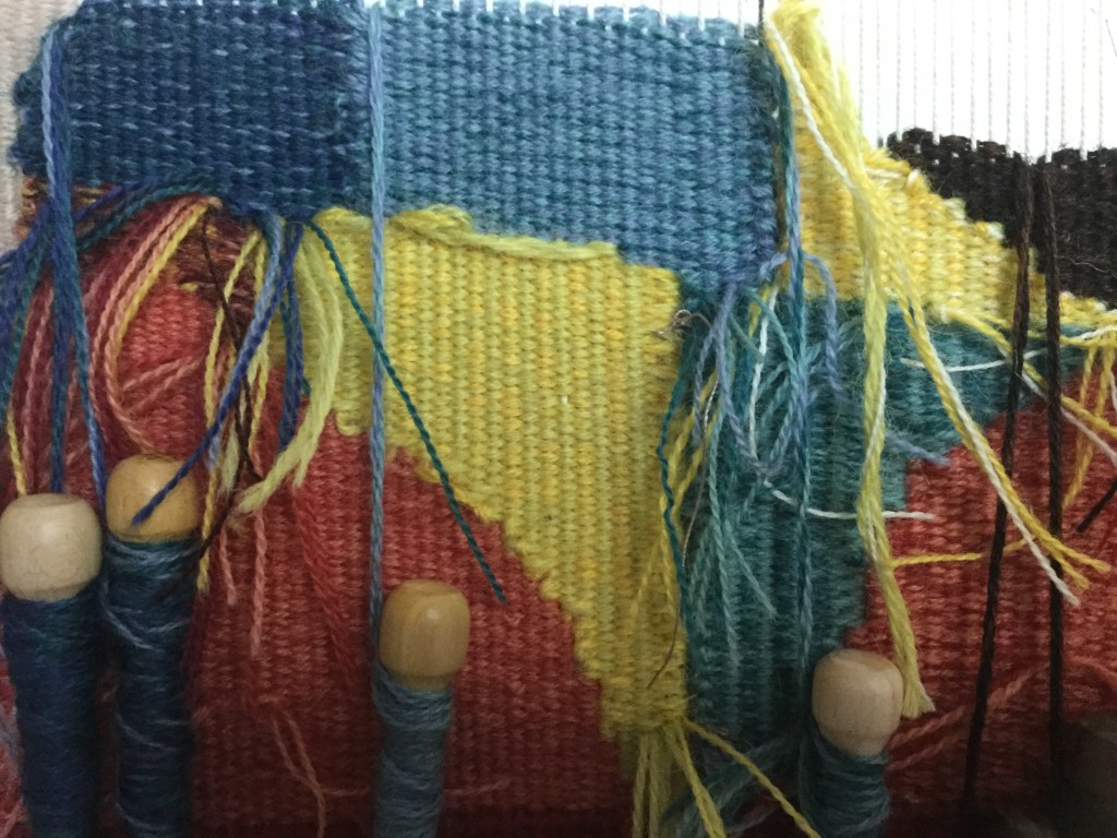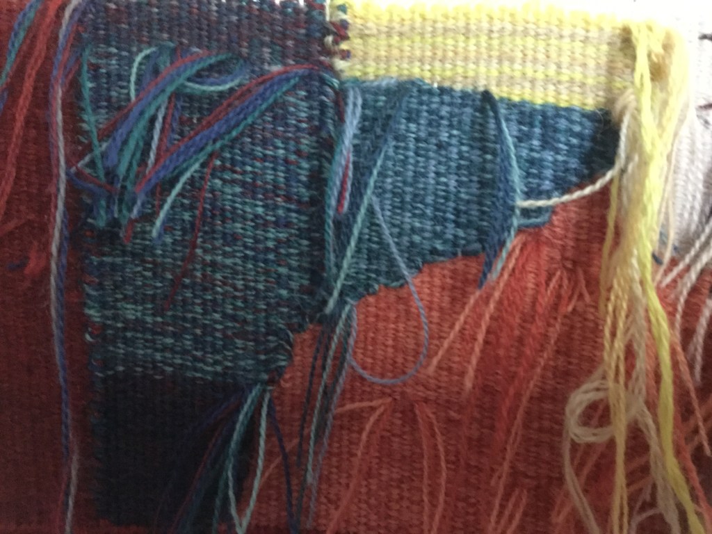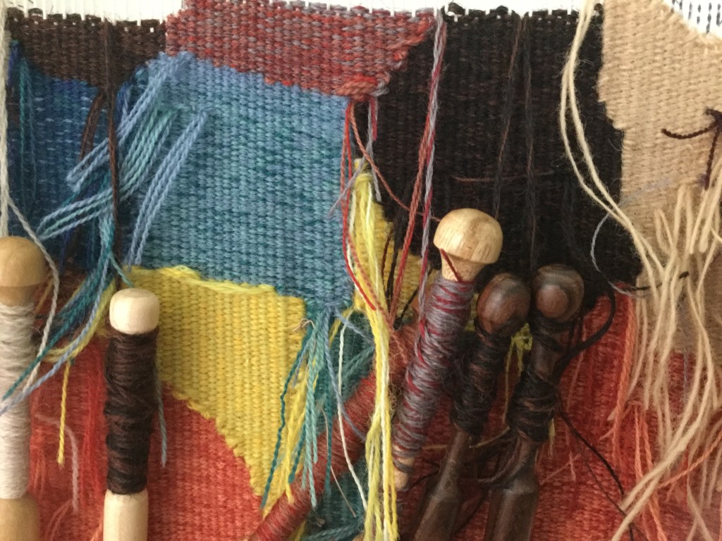 The weaving is going slowly, as I have diiferent projects on the go. It won’t be finished before autum comes. Faces are done anyway, and hopefully better done that the first ones. I must admit that I am less disappointed on the first Alice et Anita now. I like them more. However, I wove the AA2 faces differently, and at a finer sett, I am curious to see what will come of it. Another decison to take ( or unweave): yellow or white ribbons?