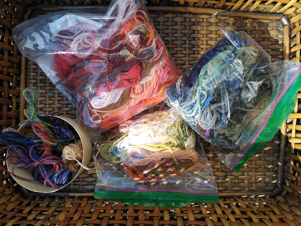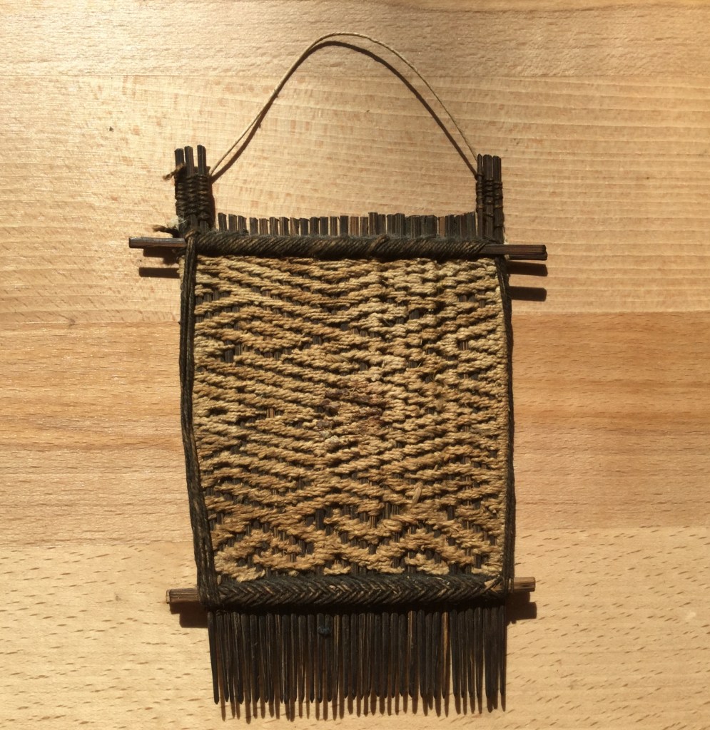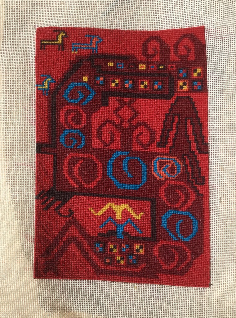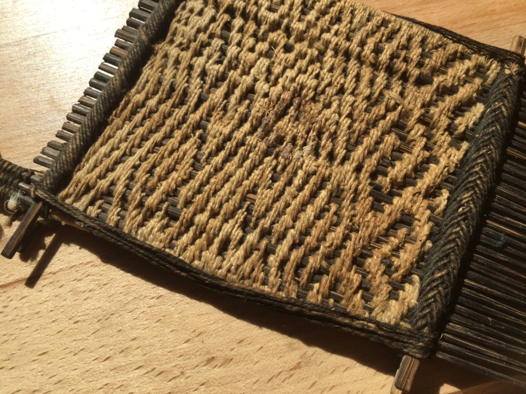 Je me suis lancée dans un crobard, en me donnant des règles : pas de carton, tissage à main levée, pas de bouts qui traînent, et tisser de face. En plus, il y a un paquet de lignes verticales, que j’essaie de négocier à la scandinave. Si tout va bien, il sera fini la semaine prochaine.