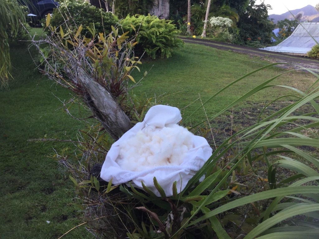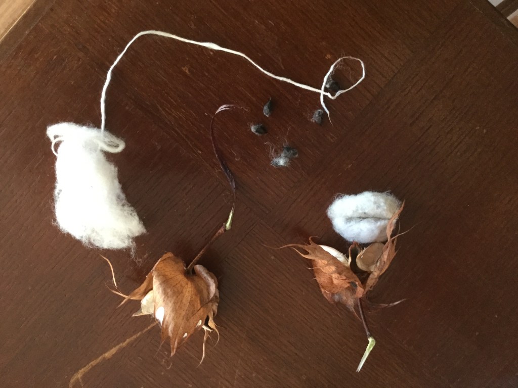 I spent this winter break in the Caribbeans, in Guadeloupe, my family homeland. The three of us, my mother, my daughter and me, spent hours ginning cotton. Two tall wild cotton trees are growing on my brother’s property. I harvested all the cotton linters I could, and we worked at it, listening to my mother’s souvenirs.