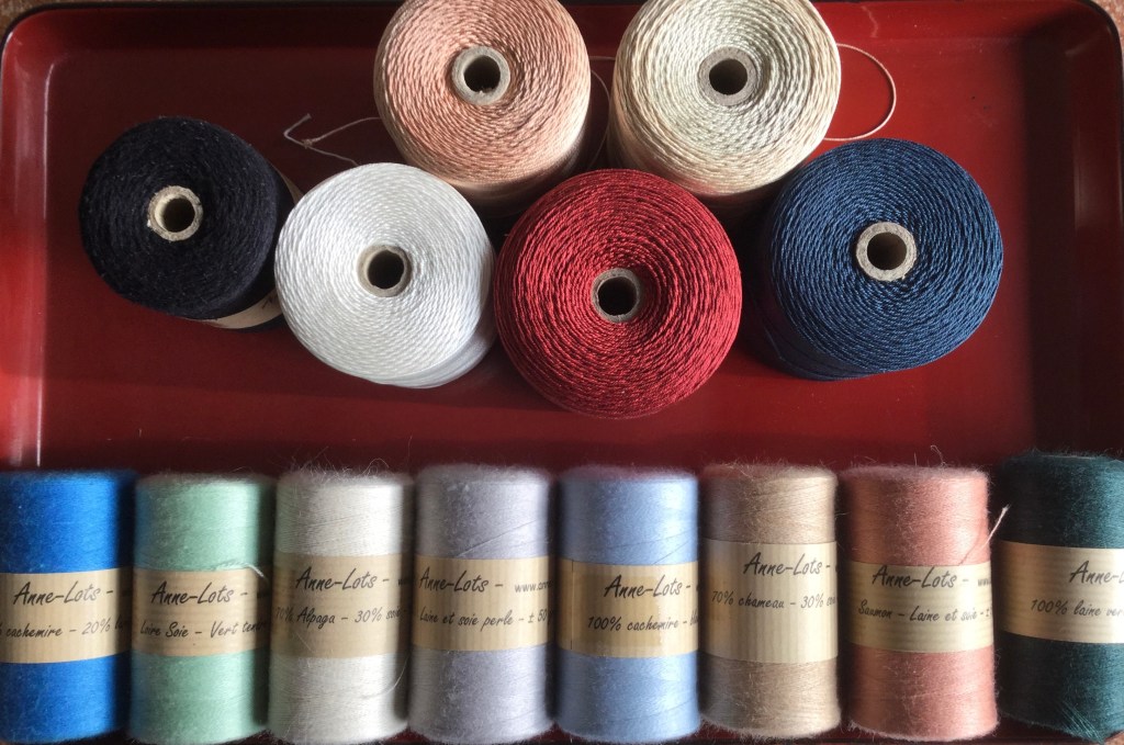 Au destockage de laine près de chez moi, j’ai trouvé des merveilles de petites bobines de fil de toutes sortes de fibres, soie, laine, cachemire, chameau. Je ne sais pas encore ce que j’en ferai, on verra bien.