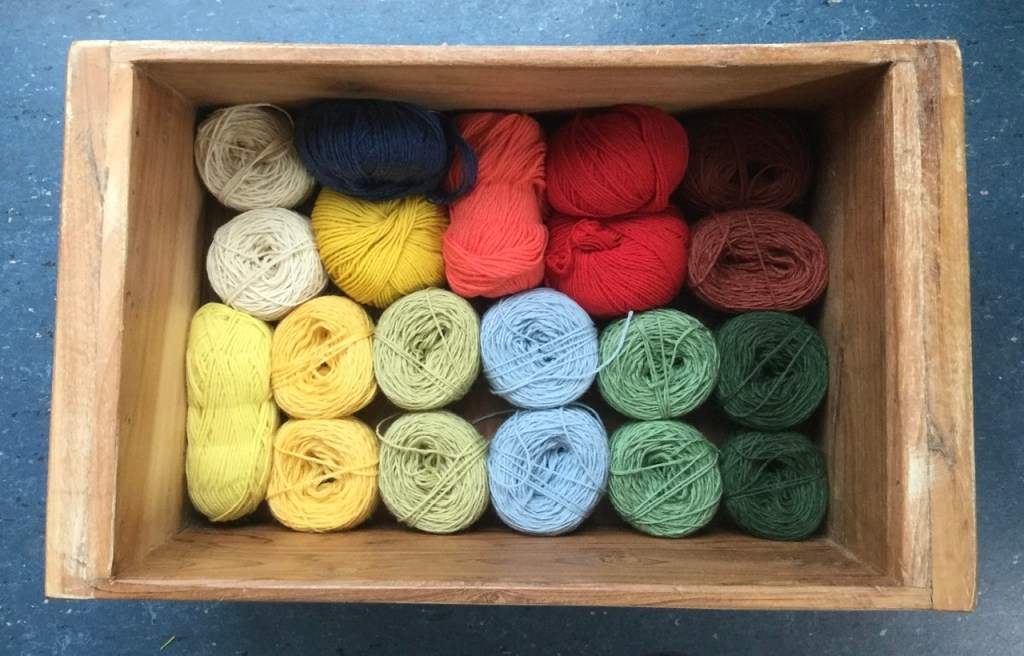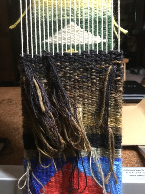 Finally not so quick and easy…. i’m using yarns I don’t know about yet, so I have to sample to see how they behave. Then, I’ve never worked at 6 epi, I have to test each kind of yarn and decide how many threads I need. The yarn I choose for one of the the main colors is not the right one : it’s a knitting yarn, very soft and elastic, it won’t work. I found quite the same color at Weaversbazar, but I will have to wait for my order to arrive! The blue was not easy too, I hesitated a lot between different balls, and came back to my Aubusson stack. Anyway, the time I’m spending with the yarn now allows me to think over my design. There will be large areas of colors, and I’m not sure of how I will animate these surfaces. Packing gives me time to think about it too, and I love to have my mind full of creative thoughts.