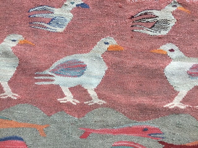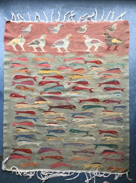 Ce tapis n’est pas un Wissa Wassef, mais il en a le charme, ses couleurs sont très belles, et tous les poissons sont différents.