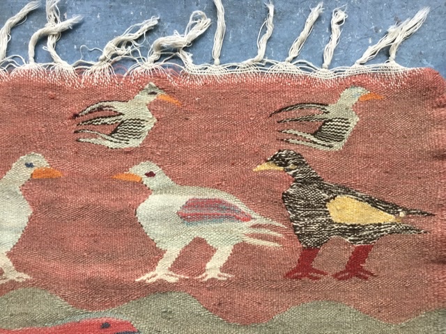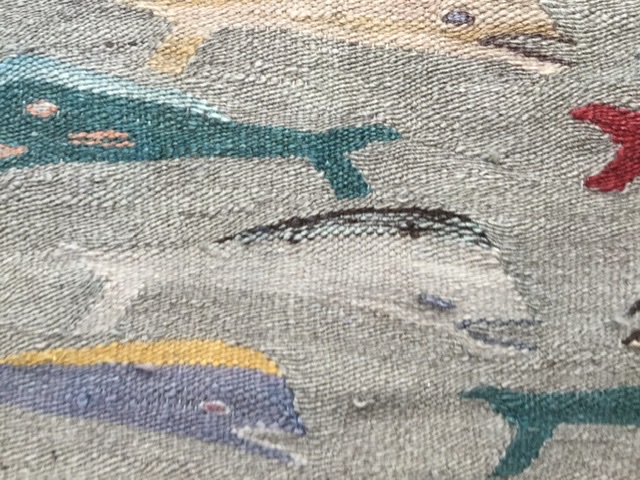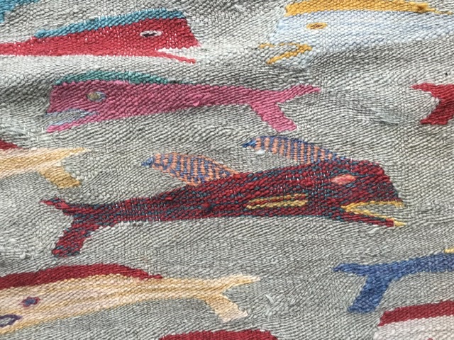 This tapestry is not a Wissa Wassef one, but it’s charming, colors are gorgeous, and no fish looks like another one.