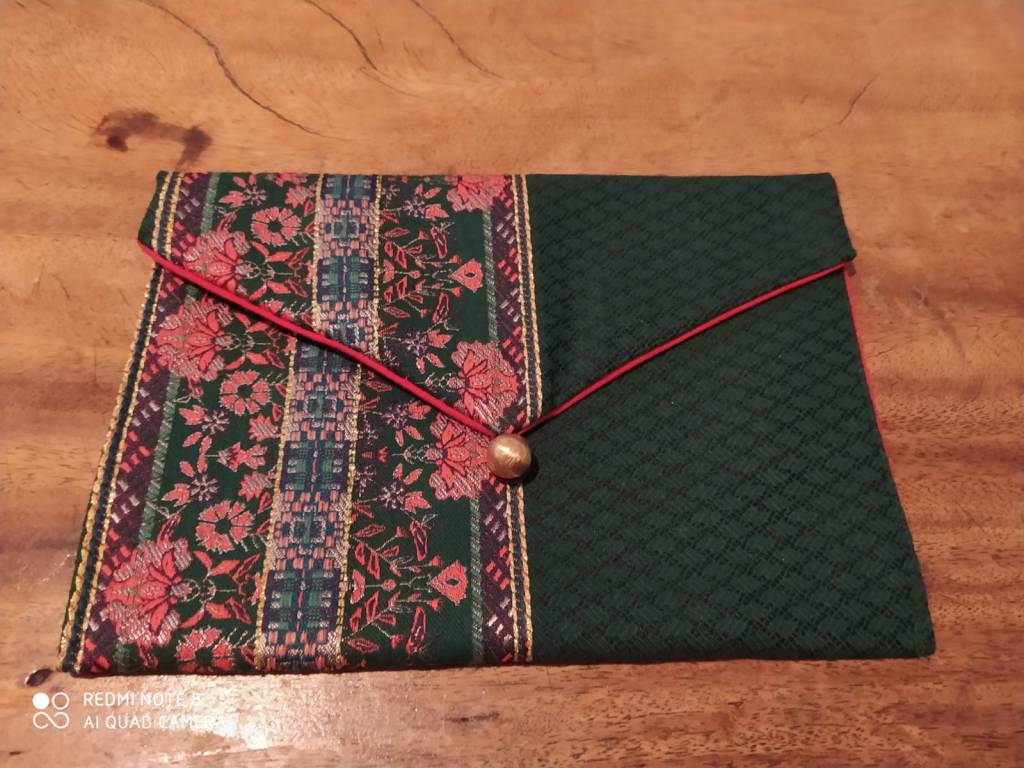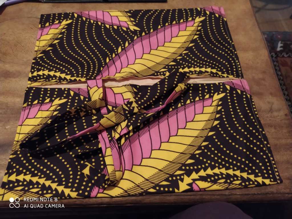 Françoise n’est pas femme à laisser l’organisation de sa retraite au hasard, et prend des cours de couture. Voici ses premières productions, un sac à tarte et une pochette.