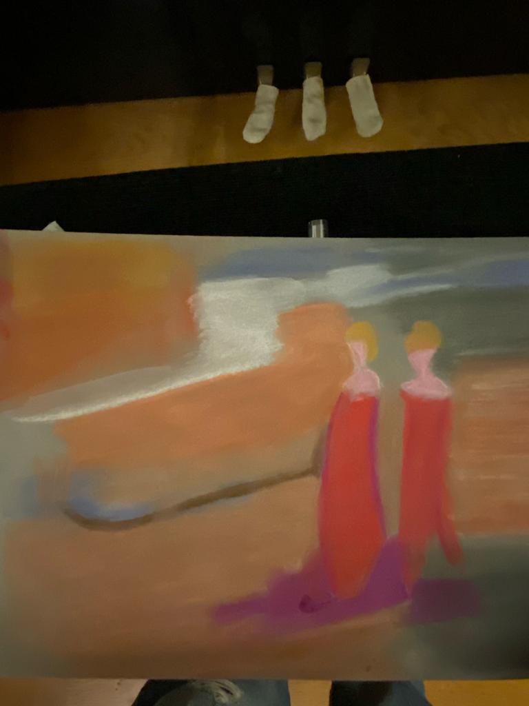 Michèle is recovering from a knee surgery, and has decided to begin drawing while healing (for healing?). Here is one of her pastels, from a painter whose name I forgot.