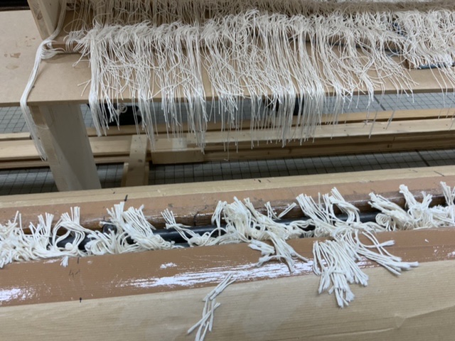 Après tant d’échantillons et d’essais, j’ai enfin commencé. (Au fait, un post sur les Alice la semaine prochaine). Le montage de la chaine n’a pas été facile, et j’espère que je pourrai aller jusqu’au bout malgré les problèmes de tension. J’ai commencé le tissage par une partie pour laquelle je n’avais pas fait d’essais, et je galère. D’ailleurs, malgré tout le travail préalable, j’ai décidé de changer l’épaisseur des fils de trame à la dernière minute, et je m’en félicite. Je préfère le grain et ça va plus vite!